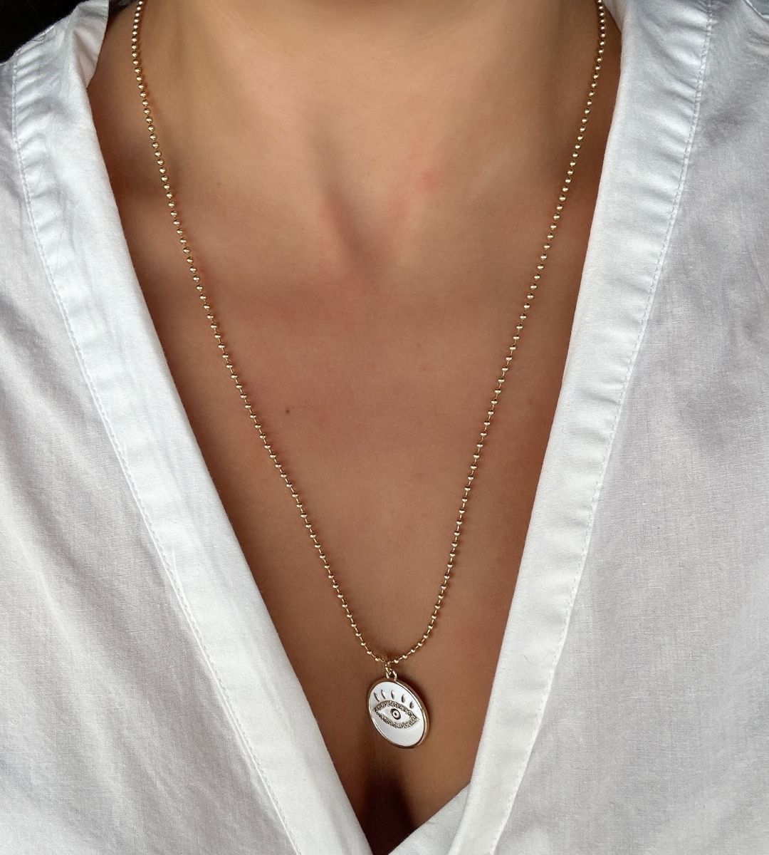 ALTIN KAPLAMA BEYAZ MADALYON KOLYE AKKLYE22
